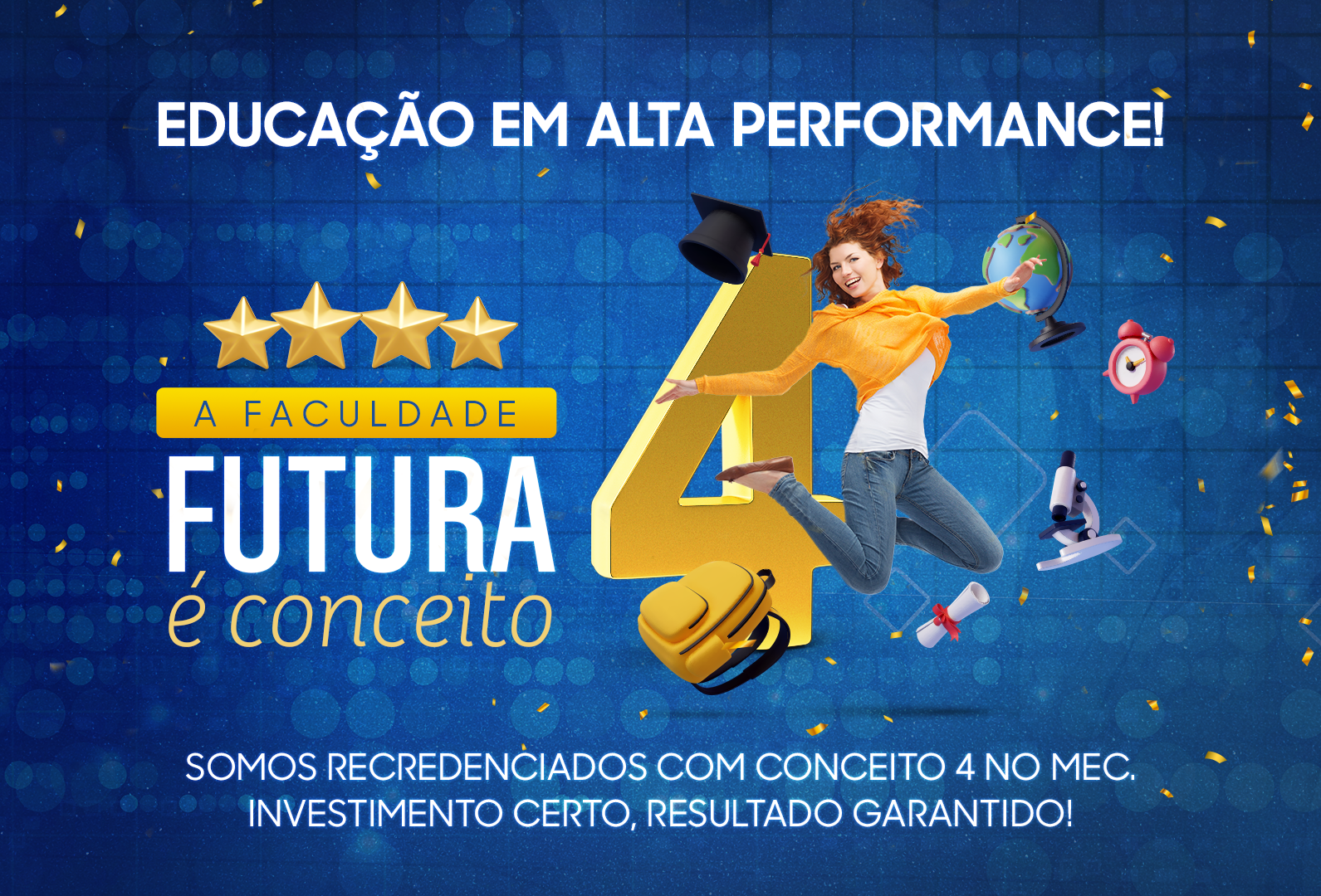 A Faculdade Futura se destaca pelo seu excelente conceito no MEC, que atesta a qualidade de seus cursos e o compromisso com a formação de alunos competentes.